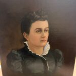 In researching Mrs. Konkle’s history, we have learned that Mrs. Joan Konkle was known for her artwork, including her self-portrait. It has been restored and now hangs in the library lobby. If you look very carefully in the bottom left corner, you will see her initials that were discovered when the portrait was restored. We also know that she bartered her oil paintings to get work done at her home after her husband passed, as some of the pieces have since been donated by Montoursville residents to the library with attached notes.